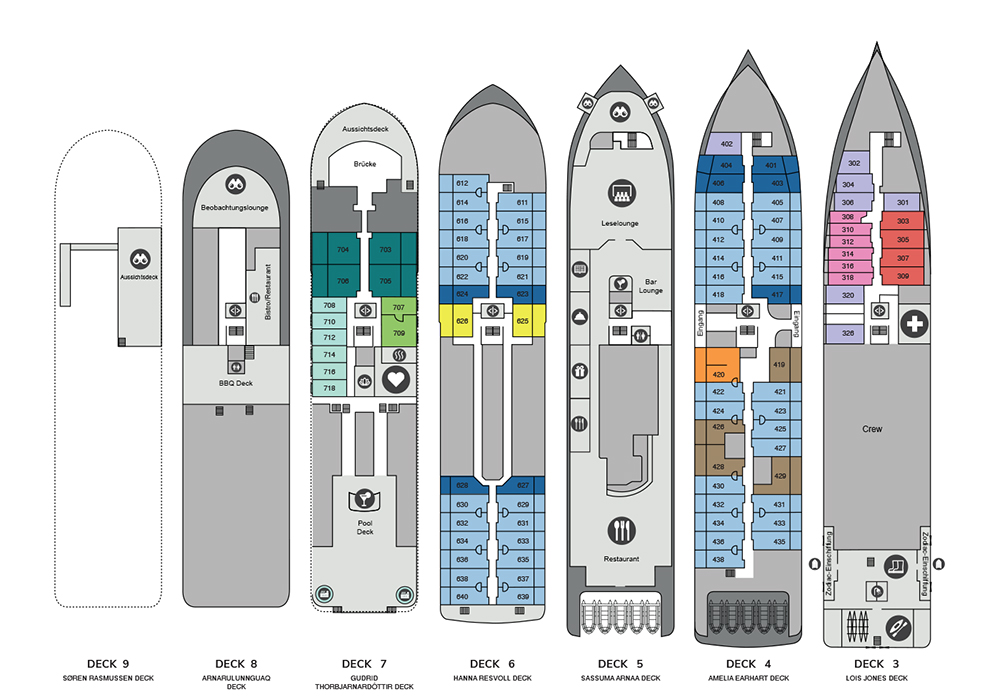 Preise für weitere Zimmerkategorien, Details zur Ausstattung der Kabinen und sonstige Informationen auf Anfrage.