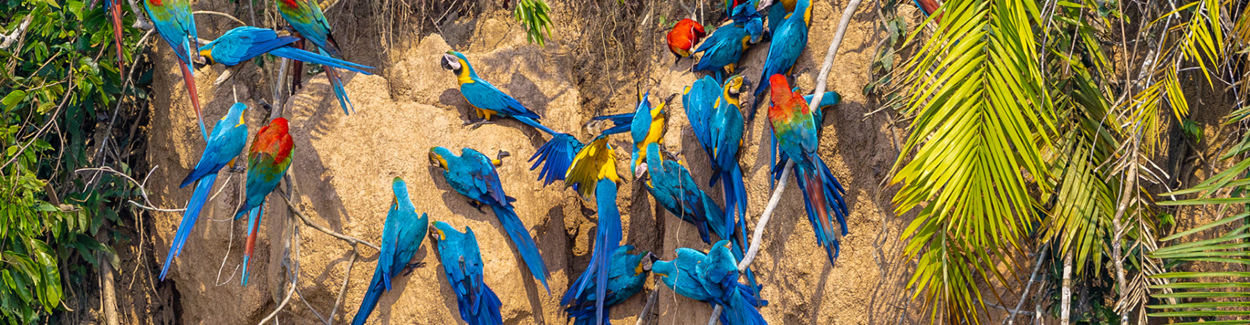 Sie können zwei verschiedene Lehmlecken besuchen. Bei einer werden Sie viele Aras sehen und bei der anderen vor allem bunte Papageien. Die Lehmlecken werden jeweils in der Morgendämmerung besucht. Hunderte von Vögeln versammeln sich hier zu einem lauten und farbenfrohen Spektakel. Sie beobachten die Vögel von einer fünfzig Meter entfernten Klippe.