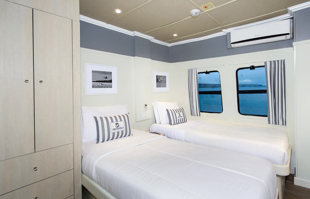 Bei der Ankunft am Flughafen Baltra werden Sie abgeholt und zum Hafen gebracht. Dort beziehen Sie Ihre Kabine an Bord des Katamarans Archipel.