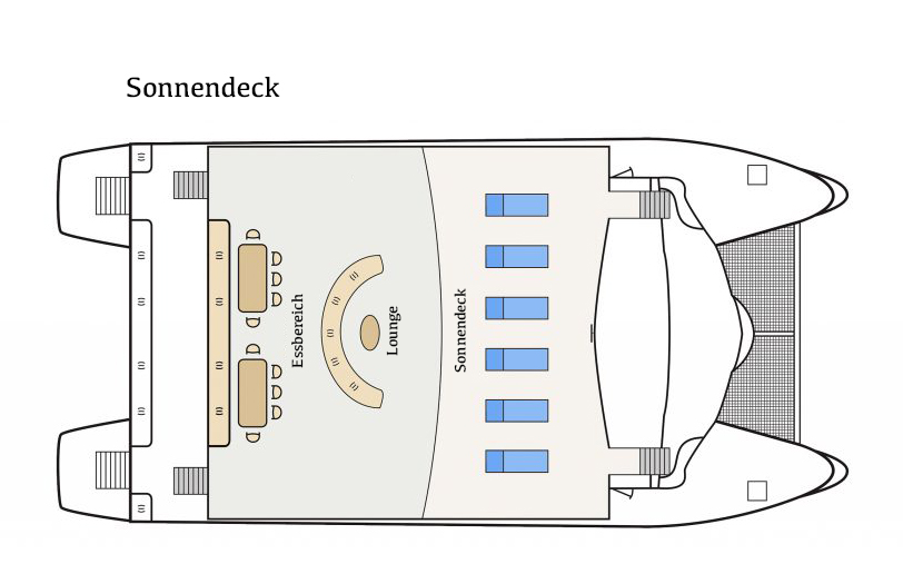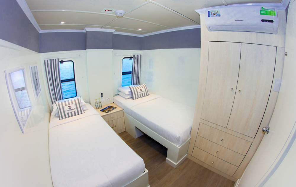 Der Motor-Katamaran Archipel I wurde 2005 zu Wasser gelassen und 2021 komplett überholt. Er hat stabile Doppelrümpfe, breite Decks und großzügige Gemeinschaftsbereiche. Der Katamaran bietet acht Kabinen über der Wasserlinie mit jeweils zwei Fenstern mit Meerblick. Die Kabinen verfügen über ein eigenes Bad mit Warm- und Kaltwasser, niedrige Betten, Klimaanlage und Stauraum für einen komfortablen Aufenthalt. Die Lounge, das Sonnendeck mit Liegestühlen, der Speisesaal und der Essbereich im Freien werden mit insgesamt nur 16 Gästen geteilt und bieten viele Möglichkeiten zur Entspannung.