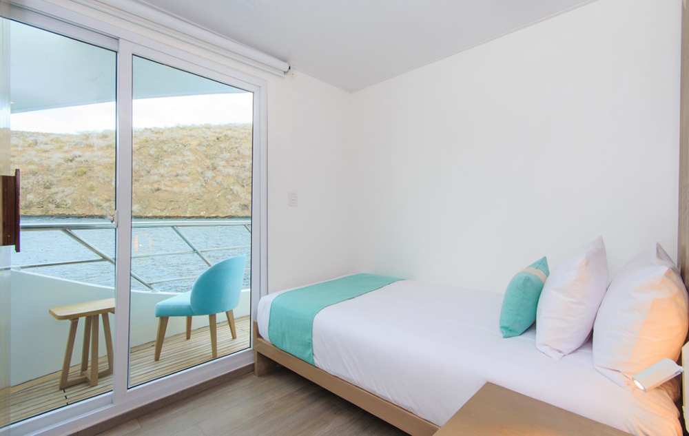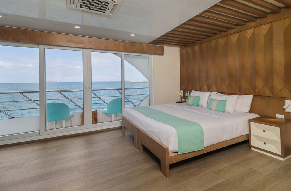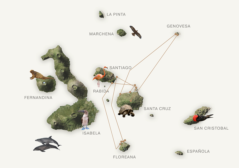 Sie kommen auf der hufeisenförmigen Insel Genovesa an und gehen am weißen Sandstrand der Darwin Bay an Land. Diese ruhige und geschützte Bucht ist ideal zum Schnorcheln. Sie können hier Hammerhaie, Rochen und eine Vielzahl bunter Fische beobachten. Ein kurzer Wanderweg führt durch eine Gezeitenlagune und Mangroven, die der Heimat einer Vielzahl von Landvögeln dienen, wie Nazca-Tölpel, Rotfußtölpel und Schwalbenschwanzmöwen.