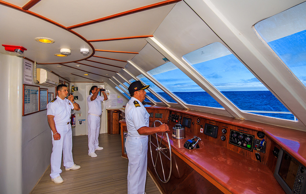 Nach der Ankunft am Flughafen in Baltra unterziehen Sie sich einer Inspektion, um sicherzustellen, dass keine fremden Pflanzen oder Tiere auf die Inseln eingeführt werden. Danach werden Sie zum Hafen gebracht und gehen an Bord des Treasure-Katamarans. Anschließend genießen Sie Ihr erstes Mittagessen an Bord.