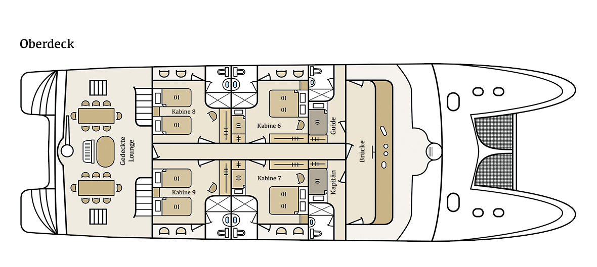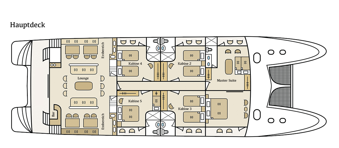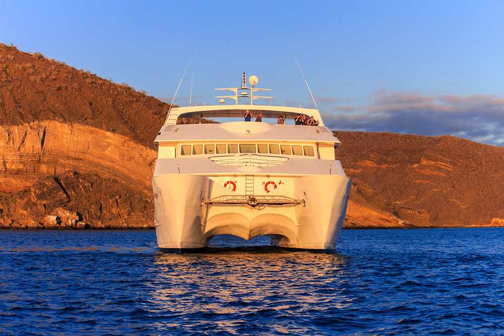 Die Yacht Treasure Galapagos ist ein erstklassiger Motorkatamaran, der speziell für luxuriöse Kreuzfahrten auf den Galapagos-Inseln konzipiert wurde. Die Treasure wurde 2009 in Guayaquil gebaut und 2022 komplett überholt. Durch ihre Katamaran-Bauweise bietet die Yacht eine hohe Stabilität im Wasser, was den Reisekomfort erheblich steigert. Ihr Betrieb ist sehr effizient und minimiert die Auswirkungen auf das empfindliche Ökosystem. Die Treasure verfügt über eine angemessene Sicherheitsausrüstung und ist in Besitz des internationalen Sicherheitsmanagement-Zertifikats der Internationalen Schifffahrtsorganisation (IMO). Die Treasure bietet Platz für bis zu 16 Passagiere in 9 komfortablen Kabinen, darunter eine Master Suite. Kabinen sind geräumig, hell und modern ausgestattet, inklusive eigenem Bad mit Haartrockner und Bademantel, Klimaanlage, eigenem Balkon, Sitzecke und einem Safe. An Bord finden sich ausserdem großzügige Gemeinschaftsbereiche, darunter ein klimatisierter Salon mit Essbereich und Bar, eine Bibliothek sowie mehrere Sonnendecks mit Liegestühlen und einem Jacuzzi.