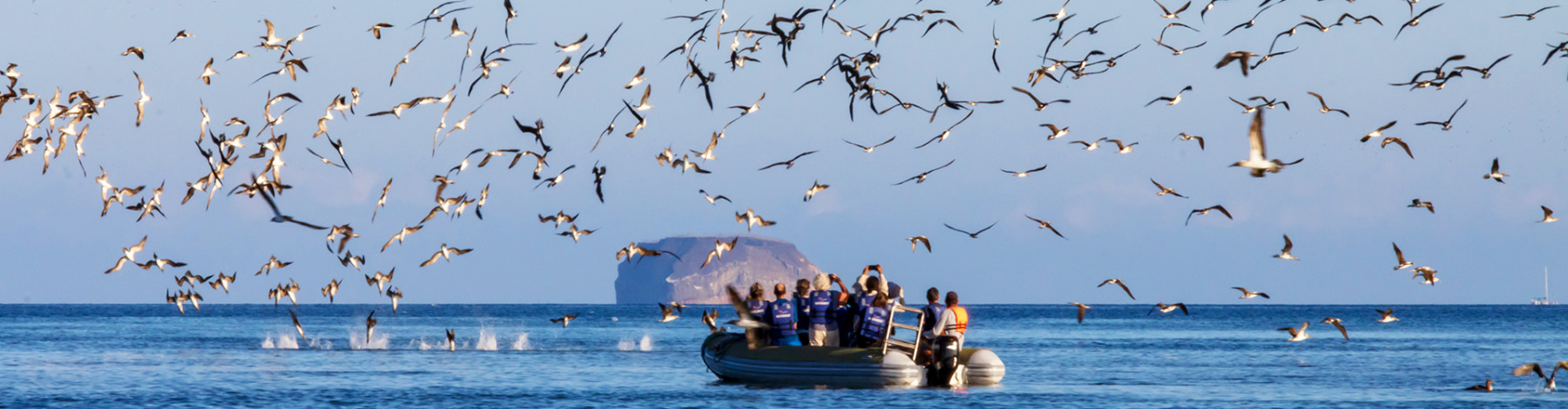 Sie spazieren auf Pfaden und erleben einmal mehr die faszinierende Tierwelt dieser einzigartigen Gegend. Gut möglich, dass Sie hin und wieder einem vorbeikommenden Seelöwen oder einem Meeresleguan Platz machen müssen. Sie bewundern die Nester der Blaufußtölpel, wo die Paare ihren Balztanz aufführen. An der felsigen Küsten lassen sich Schwärme von Pelikanen beobachten, die im Sturzflug Fische fangen und im Landesinneren besuchen wir einen großen Nistplatz der prächtigen Fregattvögel. Diese riesigen, dunklen Akrobaten haben eine Flügelspannweite von zwei Metern, und die Männchen mit ihren aufgeblasenen scharlachroten Kehlsäcken sitzen in niedrigen Büschen, um über ihre ebenso großen Küken zu wachen.