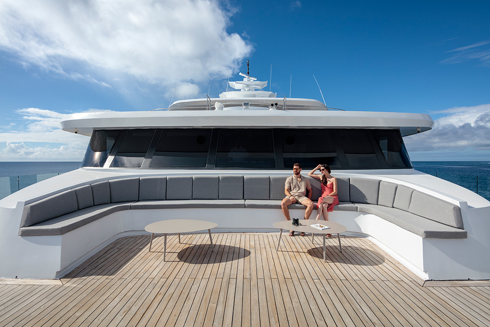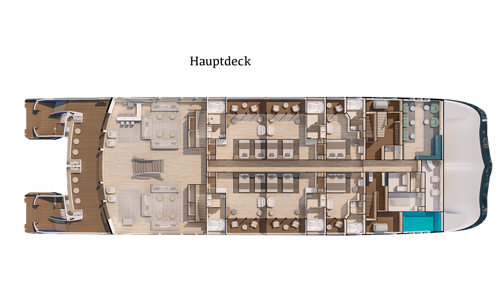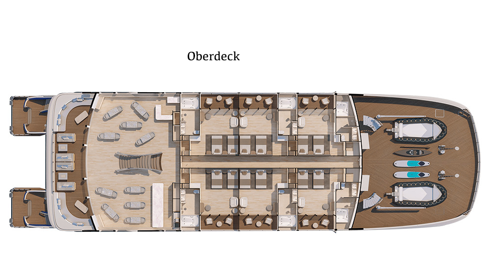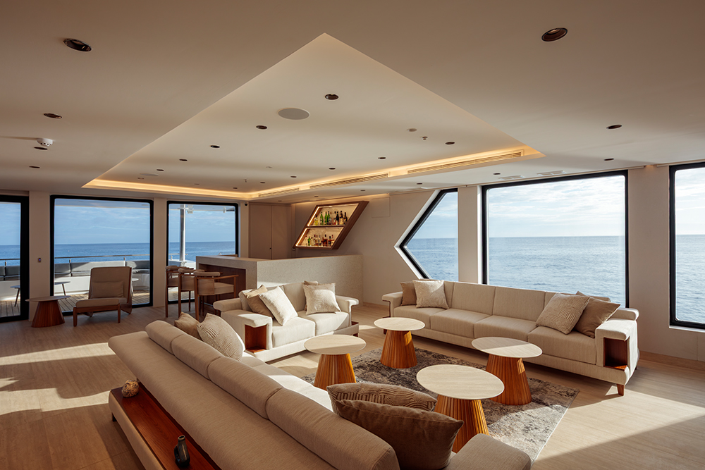 Der brandneue Katamaran wurde erst 2025 fertiggestellt und in Betrieb genommen. Es ist ein Motorkatamaran der Luxusklasse, der Platz für 20 Gäste in 10 großzügig konzipierten und luxuriösen Suiten bietet. Diese befinden sich auf dem Haupt- und Oberdeck des Schiffes. Alle Suiten haben private Badezimmer, Klimaanlage, begehbare Kleiderschränke, Minibars, raumhohe Fenster, private Balkone und Whirlpools. Im Innenbereich befinden sich der Empfangsbereich, zwei Lounges, zwei Gourmet-Restaurants und eine Bibliothek. Im Außenbereich gibt es eine Lounge mit Bar, ein geräumiges Panoramadeck und ein Sonnendeck mit Liegestühlen und einem Jacuzzi. Ausserdem gibt es einen Spa mit einem Hamman und einem Massagebereich.