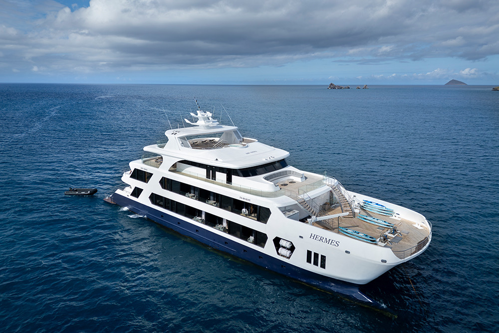 Sie kommen auf der Insel Baltra auf den Galápagos an, werden von unserem Reiseleiter abgeholt und zum Luxuskatamaran Hermes gebracht. Dann segeln wir zum Strand von Bachas, wo wir unseren ersten Ausflug machen. Schwimmen oder schnorcheln Sie im kristallklaren Wasser. In den flachen Gewässern und Gezeitentümpeln können Sie alle Arten von Meeresbewohnern beobachten. Bachas ist auch einer der wichtigsten Strände für die grüne Schildkröte als Nistplatz. Außerdem gibt es hier Fregattvögel, Blaufußtölpel und Seelöwen.