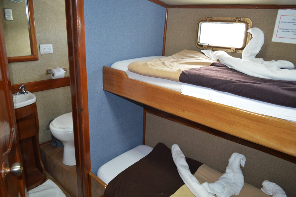 Nach Ihrer Ankunft auf dem Flughafen auf der Insel Baltra werden Sie von Ihrem Reiseleiter abgeholt und zur Golondrina gebracht. Sie werden begrüßt und beziehen Ihre Kabine.