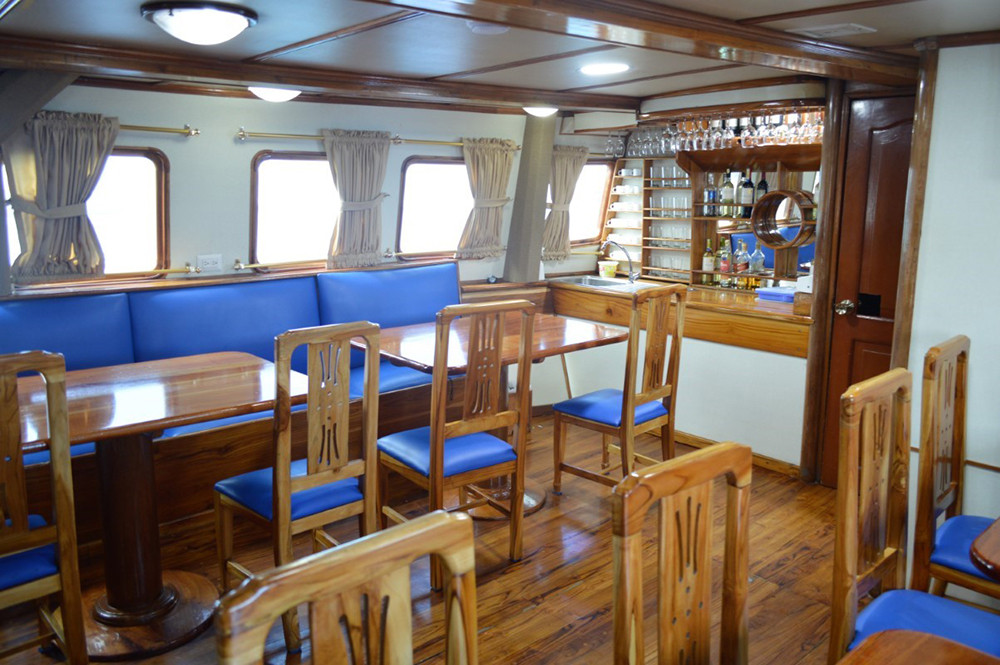 Die gemütliche Motoryacht Golondrina bietet Platz für 16 Passagiere. Jede Kabine verfügt über eine Klimaanlage und ein eigenes Bad mit Warm- und Kaltwasser, Dusche, Waschbecken und Toilette. Die großzügigen Decks, der gemütliche Speisesaal, die Bar und die Lounge bieten ein echtes Schiffsfeeling.
