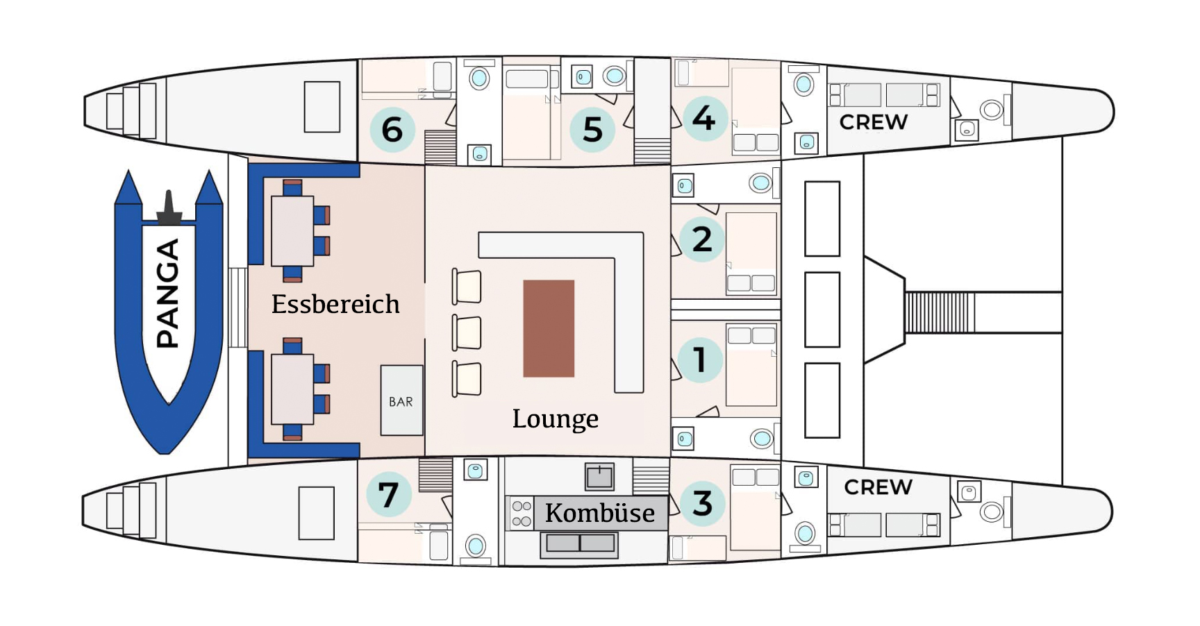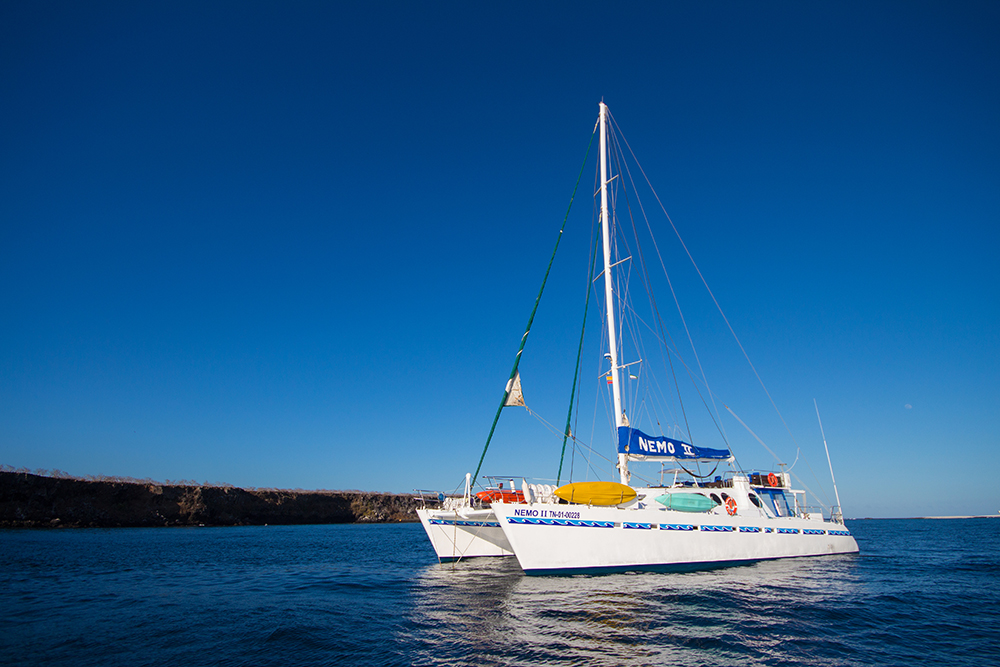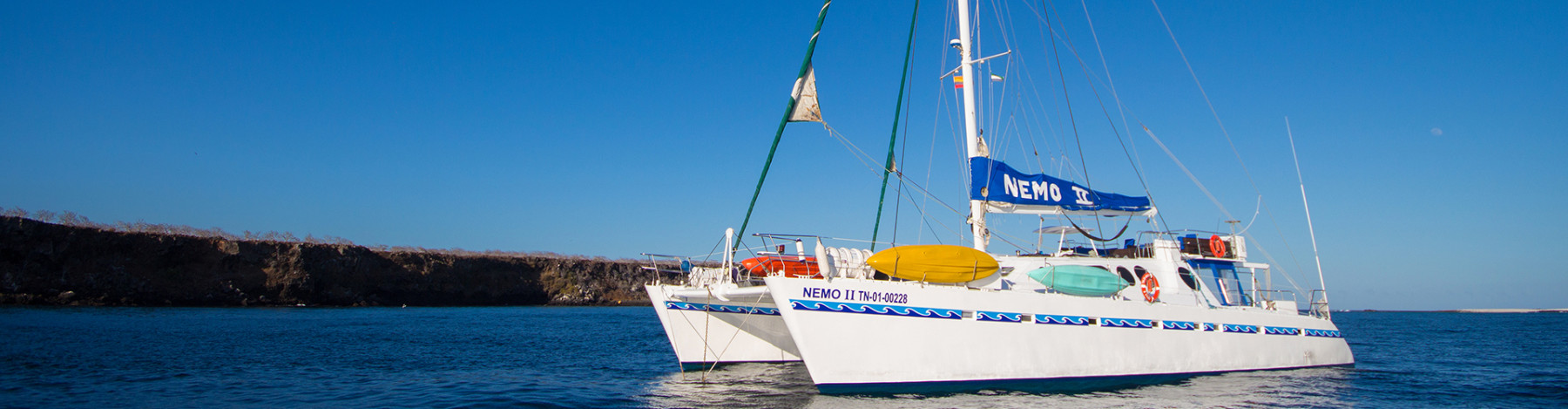 Nemo II ist ein geräumiger, moderner und eleganter Segelkatamaran. Er wurde 1990 vom Stapel gelassen. Er erfüllt alle Sicherheitsstandards und ist heute ein Schiff der ersten Klasse. Nemo II bietet Platz für 12 Passagiere in 6 Doppelkabinen. Alle Kojen verfügen über ein eigenes Bad mit Toilette und Dusche, sowie eine Klimaanlage. Das Sonnendeck, die Lounge oder das Netz, das zwischen den Rümpfen gespannt ist, laden zum Verweilen ein. Wenn die Meeres- und Windverhältnisse es zulassen, werden die Segel gesetzt, ansonsten navigiert der Katamaran unter Motor.