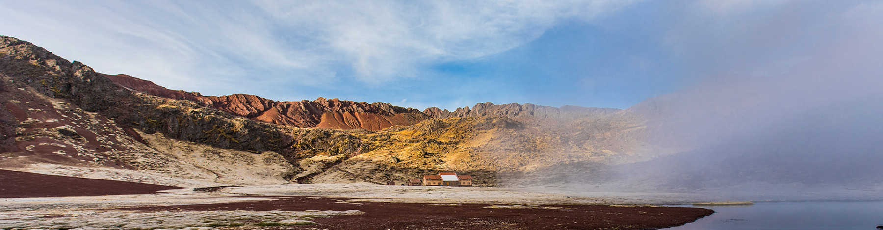 Nach dem Frühstück machen Sie sich auf den Weg zum Warmisaya Pass auf 4985 m ü. M. Danach steigen Sie ab und wandern am Kayrawiri-See entlang, umgeben von schroffen Berggipfeln, bis zum Cerro Laya Grande. Dann sehen Sie endlich den Vinicunca in seiner ganzen Farbenpracht und deswegen auch "Regenbogenberg” genannt. Während Sie diese einzigartige Landschaft bewundern, genießen Sie das Mittagessen. Anschließend machen Sie sich auf zum Berghotel Huampococha Tambo. Vielleicht sehen Sie unterwegs Andengänse, die in den Felsen nisten. Und Sie können auch die pyramidenförmigen Felsformationen des Apu Labrayani erkennen. Genießen Sie den Abend nach einem Tag voller Eindrücke bei einem leckeren Essen.